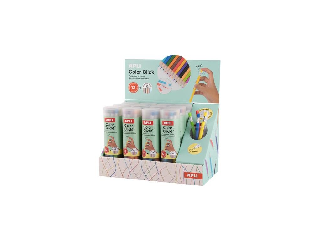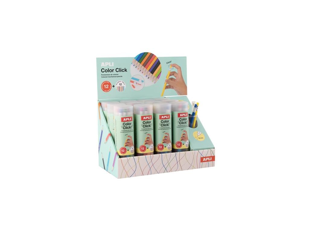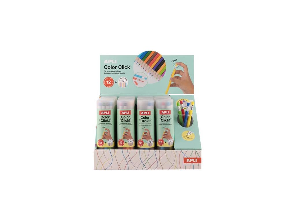 Farebné mechanické ceruzky, sada, displej, APLI "Color Click", 12 rôznych farieb, 12 sád/displej