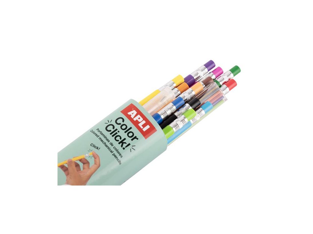 Farebné mechanické ceruzky, sada, v puzdre, APLI "Color Click", 12 rôznych farieb