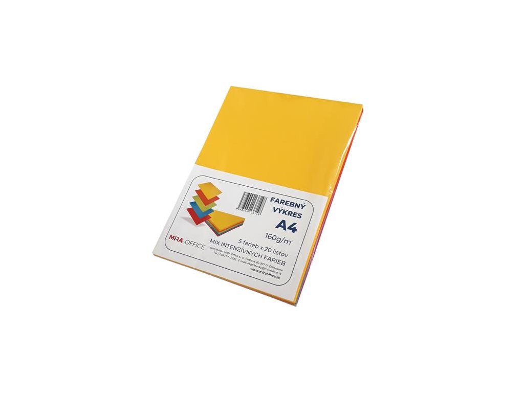 - 160 gramové farebné papiere - v 5x20 rôznych farieb: citrónžltá, malinová, citrus.zeleň, tyrkysová, fialováDodatočné parametre