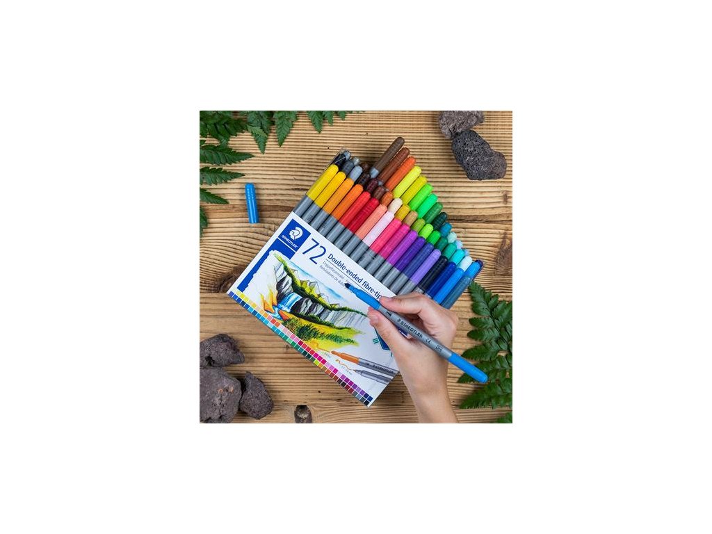 - obojstranné fixky (tenký + hrubý hrot) - ideálne k farbeniu, písaniu, ilustrácii, kresleniu - hrot odolný proti zatlačeniu - žiarivé farby - hrúbka písma: cca. 3 mm a 0,5 – 0,8 mm - 72 rôznych farieb Značka: STAEDTLER Výrobca: STAEDTLER SE Adresa: Moosäckerstr. 3 , 90427 Nuremberg, Germany Web: http://www.staedtler.com Email: https://www.staedtler.com/intl/en/service/contact/Dodatočné parametre
