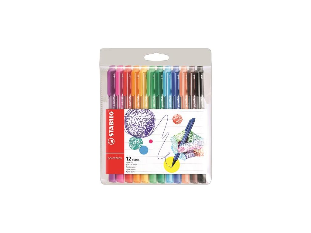 Fixky, sada, 0,8 mm, STABILO "Point Max", 12 rôznych farieb