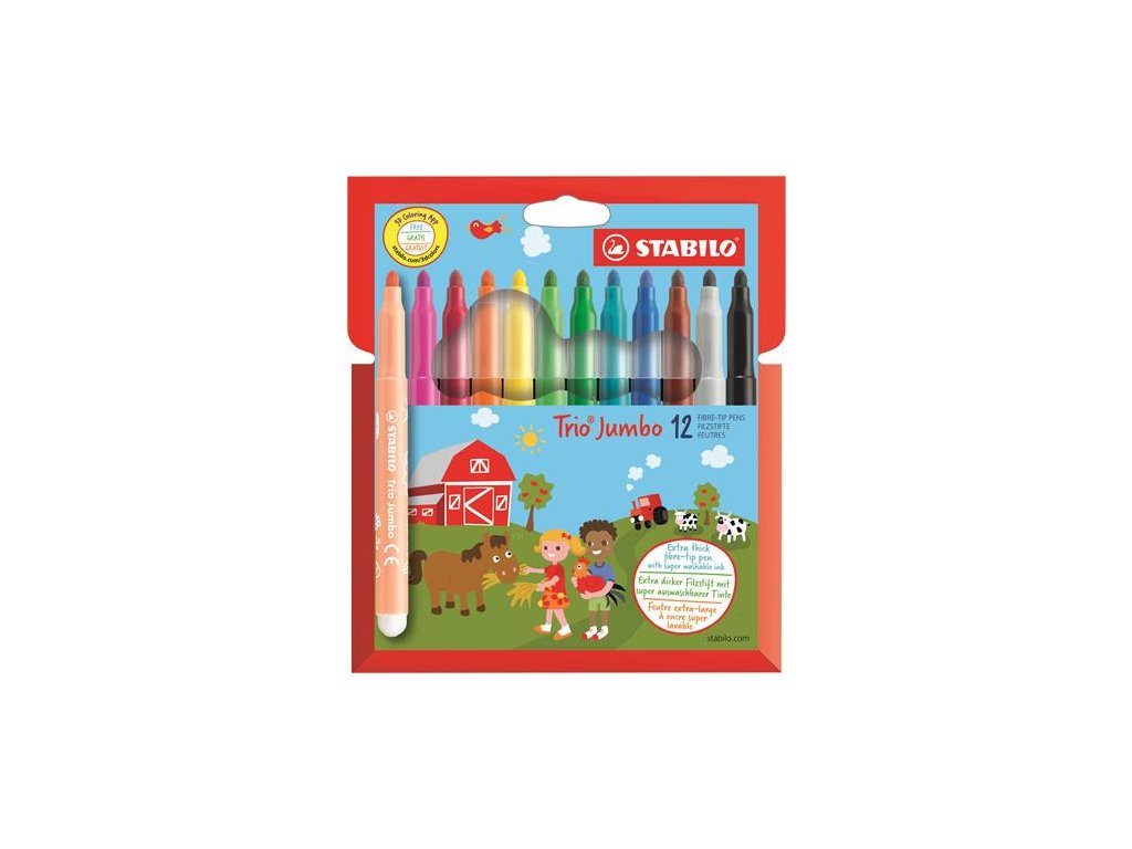Fixky, sada, 3 mm, STABILO "Trio Jumbo", 12 rôznych farieb