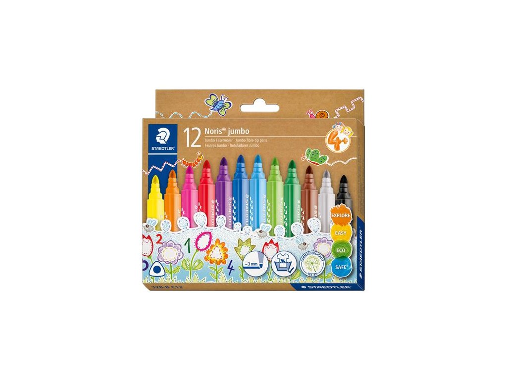 produktová rodina Noris jumbo je výborná voľba pre malé deti bezpečné, ekologické ideálne na vyfarbenie veľkých plôch atrament na báze vody s potravinárskymi farbami uzáver s ventilom PP telo pera z väčšiny textílií vyprateľné hrúbka písma: 3 mm žívé farby hnedé kartónové balenie pre ekologické myslenie odporúčaný vek: od 4 rokov Značka: STAEDTLER Výrobca: STAEDTLER SE Adresa: Moosäckerstr. 3 , 90427 Nuremberg, Germany Web: http://www.staedtler.com Email: https://www.staedtler.com/intl/en/service/contact/Dodatočné parametre