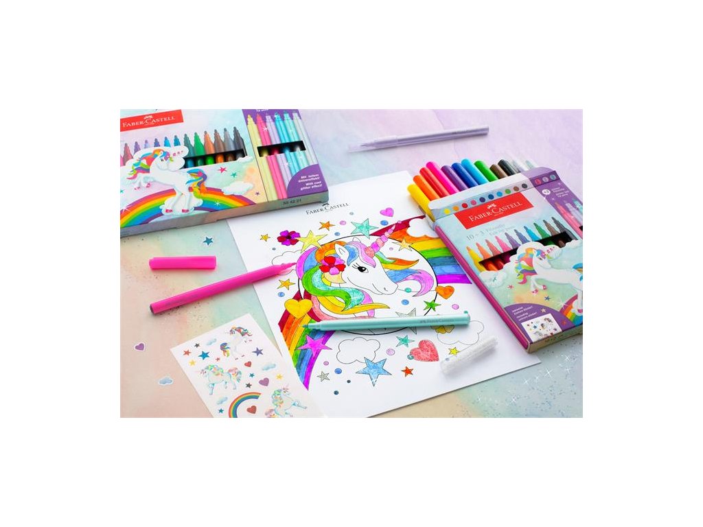 Fixky, sada, FABER-CASTELL "Jednorožec" 10 rôznych farieb + 3 trblietavé