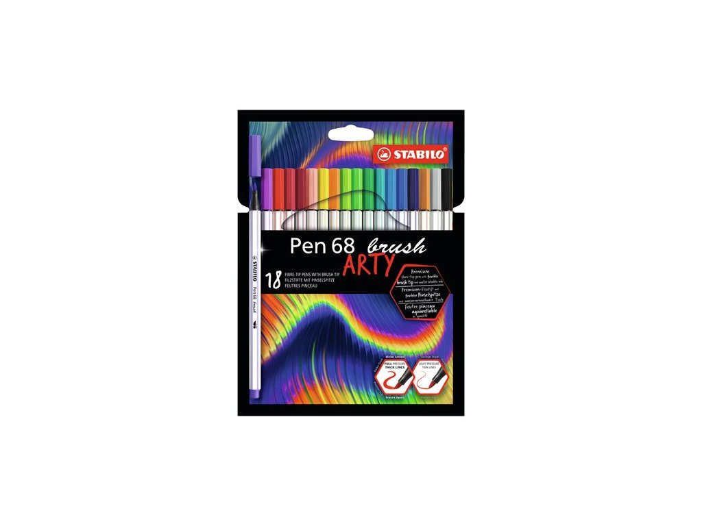 Fixky, sada, STABILO "Pen 68 brush ARTY", 18 rôznych farieb
