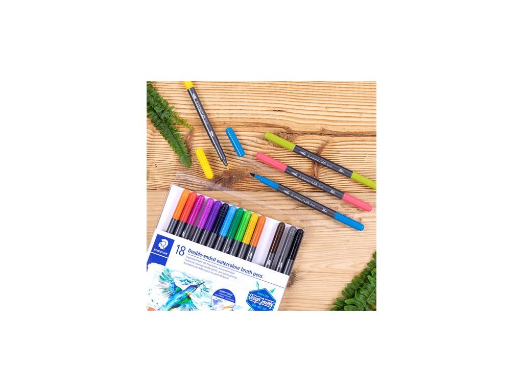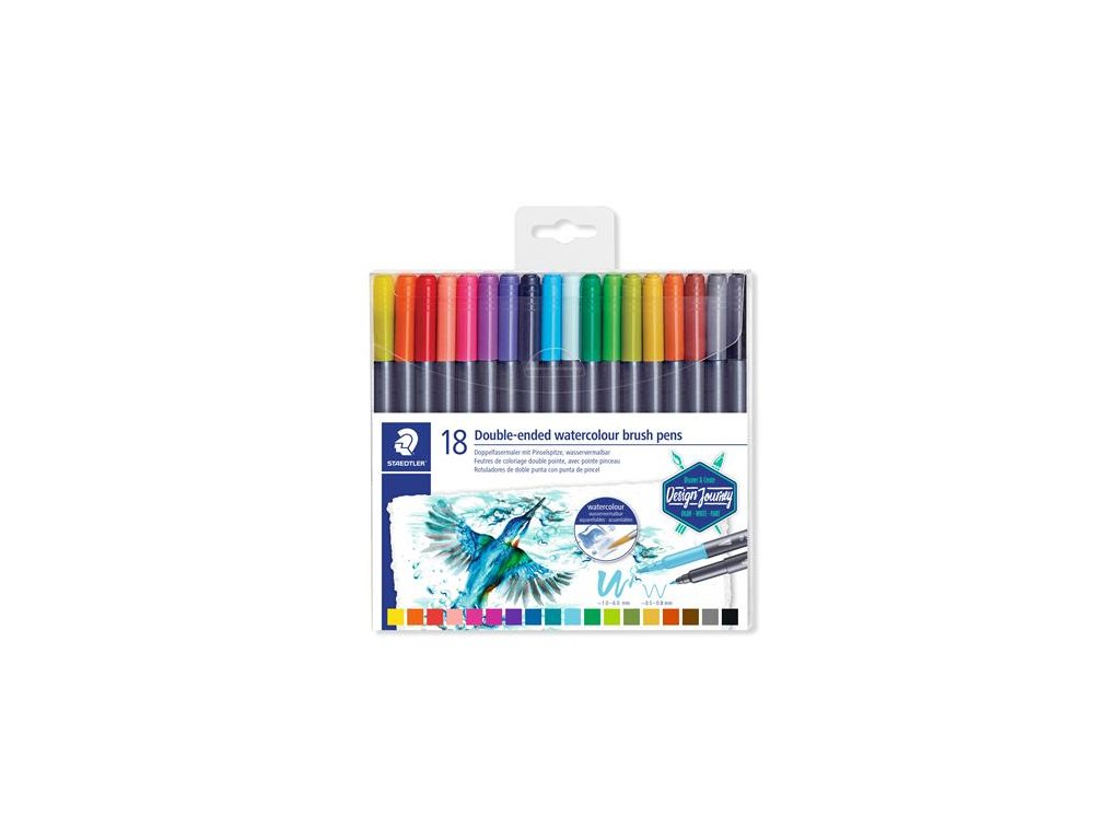Fixky v tvare štetca, sada, 0,5-0,8/1,0-6,0 mm, obojstranné, STAEDTLER "3001", 18 farieb