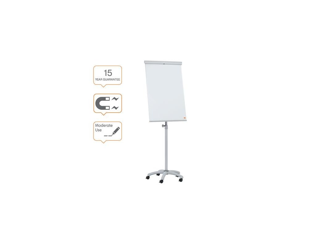 Mobilná magnetická oceľová tabuľa a stojan na flipchart so vstavaným držiakom na pero. - oceľový povrch magnetickej tabule zaisťuje lepšiu stierateľnosť pri častom používaní - stojan na flipchart so vstavaným držiakom na pero - výškovo nastaviteľná, mobilná základňa s pevnými kolieskami pre maximálnu stabilitu - s háčikmi na používanie papierov Nobo flipchart - upínacia lišta zjednodušuje a uľahčuje oddeľovanie listov - záruka 15 rokov Značka: NOBO Výrobca: Esselte Kft. Adresa: 1139 Budapest, Lomb u. 37-39. A ép. II. 8., Hungary Web: https://www.accobrands.com/brands/ Email: hungarymarketing@acco.comDodatočné parametre