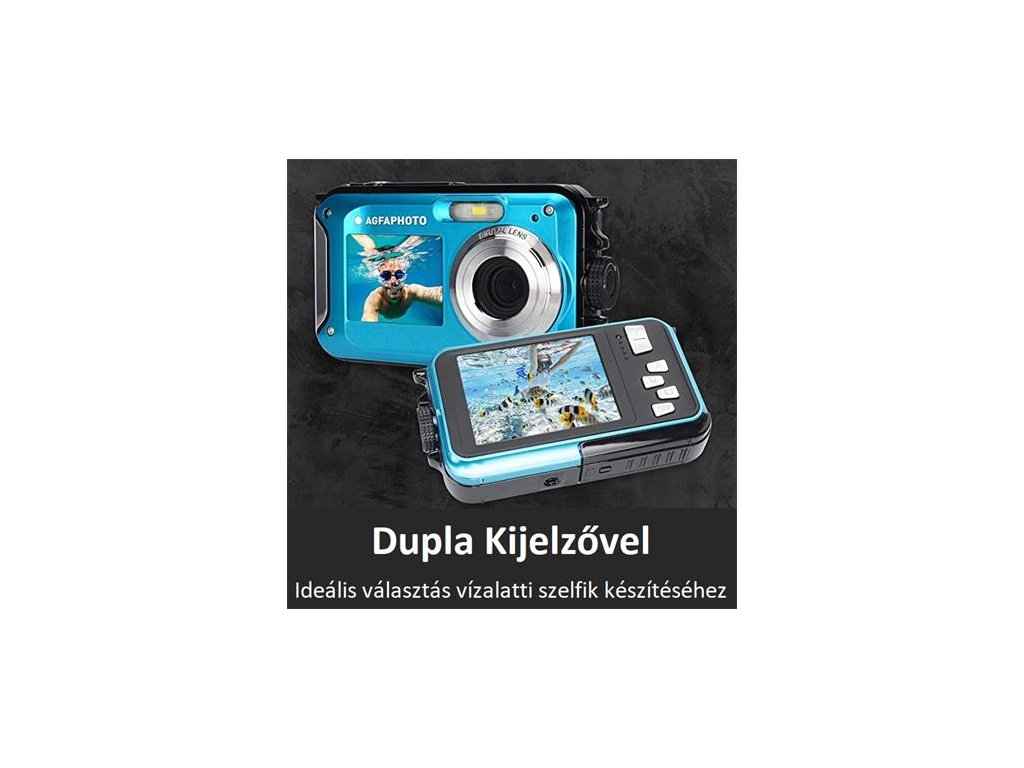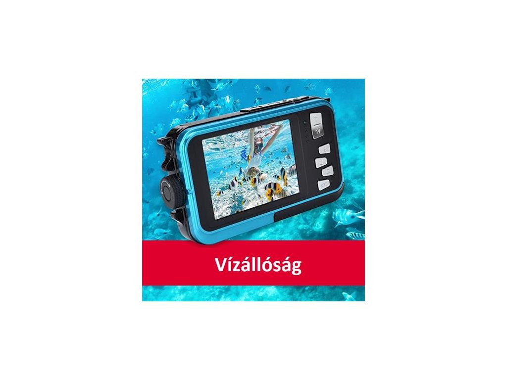 Cenovo dostupný vodotesný fotoaparát, ktorý oceníte na dovolenke. Fotografujte a nahrávajte FullHD video v hĺbke až 3 m! Fotoaparát má 2,7" hlavný displej a 1,8" selfie displej. Medzi ďalšie funkcie zariadenia patrí detekcia tváre a samospúšť. Fotoaparát je napájaný ľahko dobíjateľnou batériou. Na ukladanie dát sú podporované karty micro SD s kapacitou až 128 GB. Rozmer: 105 x 65,3 x 24,6 mm - Hmotnosť: 130 gDodatočné parametre