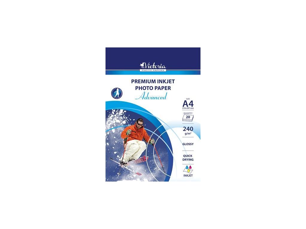 Fotopapier, pre atramentovú tlač, A4, 240 g, lesklý, VICTORIA PAPER "Advanced"