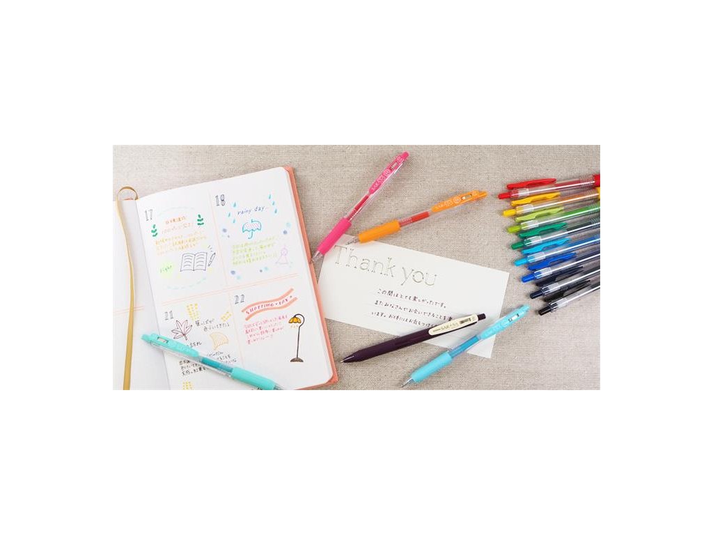 Gélové perá Sarasa Clip vynikajú svojím čistým dizajnom a praktickými funkciami, vďaka čomu sa odlišujú od ostatných písacích potrieb. Inovatívny, pružný klip umožňuje jednoduché pripnutie pera na vrecko alebo obal poznámkového bloku, takže ho máte vždy poruke. Zladenie farby tela a atramentu nie je len estetickou výhodou, ale aj praktickou pomôckou – okamžite vidíte, akou farbou budete písať. Rýchloschnúci atrament Sarasa Clip zaručuje písanie bez rozmazania a telo pera vyrobené zo 76 % z recyklovaných materiálov je dôkazom ekologického prístupu.Vlastnosti: