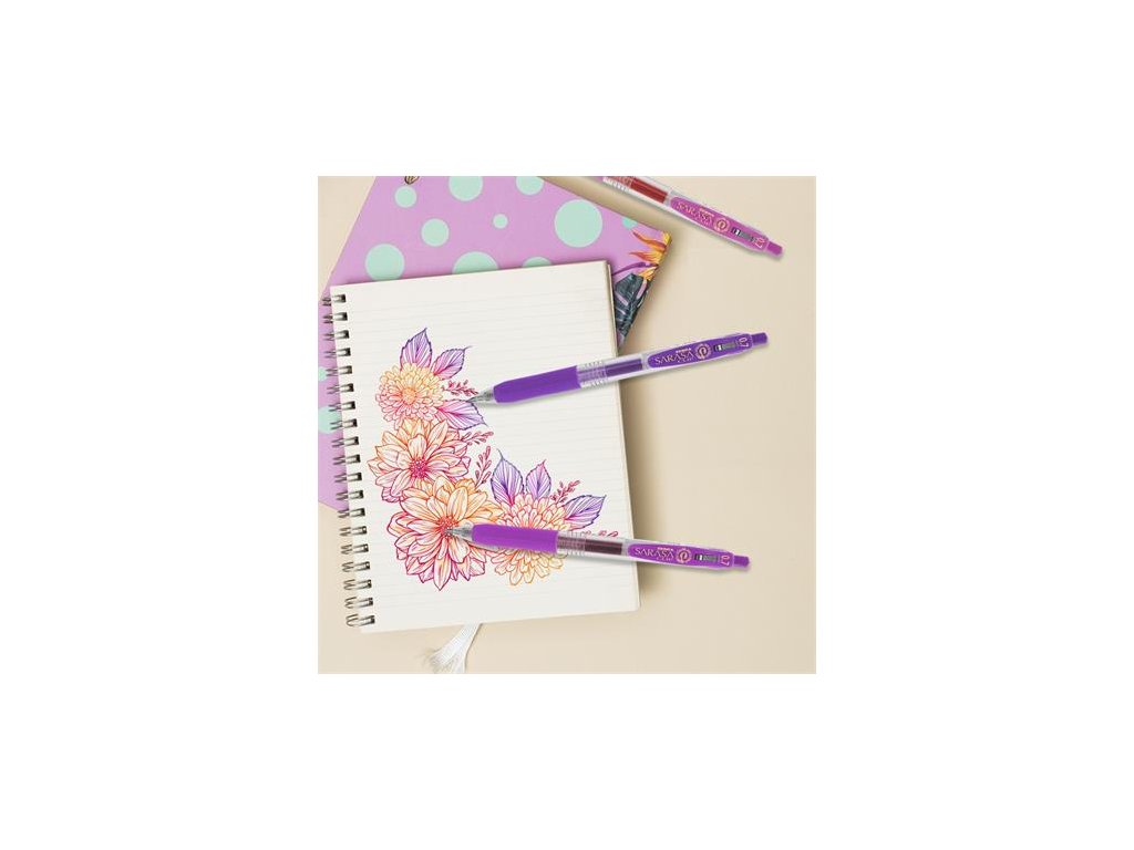 Gélové perá Sarasa Clip vynikajú svojím čistým dizajnom a praktickými funkciami, vďaka čomu sa odlišujú od ostatných písacích potrieb. Inovatívny, pružný klip umožňuje jednoduché pripnutie pera na vrecko alebo obal poznámkového bloku, takže ho máte vždy poruke. Zladenie farby tela a atramentu nie je len estetickou výhodou, ale aj praktickou pomôckou – okamžite vidíte, akou farbou budete písať. Rýchloschnúci atrament Sarasa Clip zaručuje písanie bez rozmazania a telo pera vyrobené zo 76 % z recyklovaných materiálov je dôkazom ekologického prístupu.Vlastnosti: