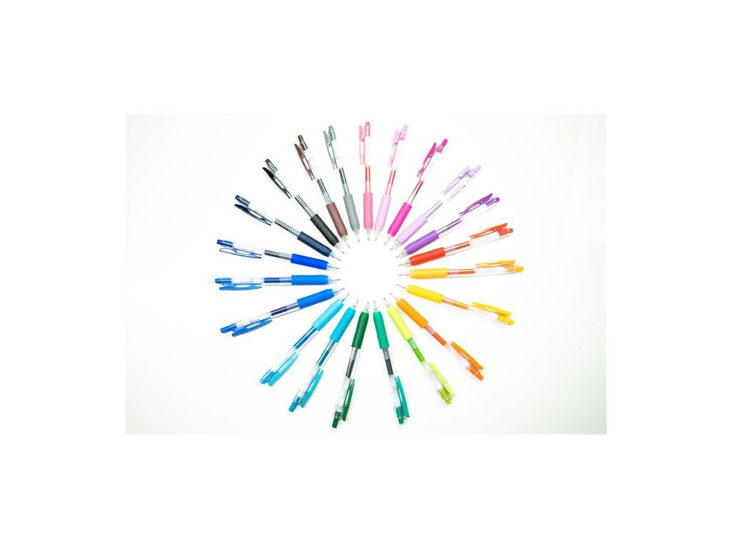 Gélové perá Sarasa Clip vynikajú svojím čistým dizajnom a praktickými funkciami, vďaka čomu sa odlišujú od ostatných písacích potrieb. Inovatívny, pružný klip umožňuje jednoduché pripnutie pera na vrecko alebo obal poznámkového bloku, takže ho máte vždy poruke. Zladenie farby tela a atramentu nie je len estetickou výhodou, ale aj praktickou pomôckou – okamžite vidíte, akou farbou budete písať. Rýchloschnúci atrament Sarasa Clip zaručuje písanie bez rozmazania a telo pera vyrobené zo 76 % z recyklovaných materiálov je dôkazom ekologického prístupu.Vlastnosti: