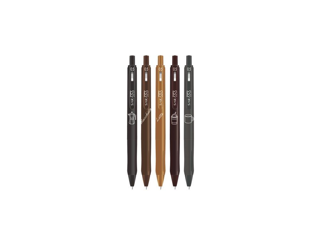 Gélové pero, 0,33 mm, stláčací mechanizmus, ZEBRA "Sarasa Study with Coffee", 5 rôznych farieb