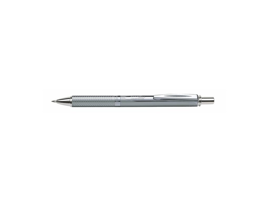 Gélové pero, 0,35 mm, stláčací mechanizmus, telo pera: strieborná, PENTEL "EnerGel BL-407" modrá