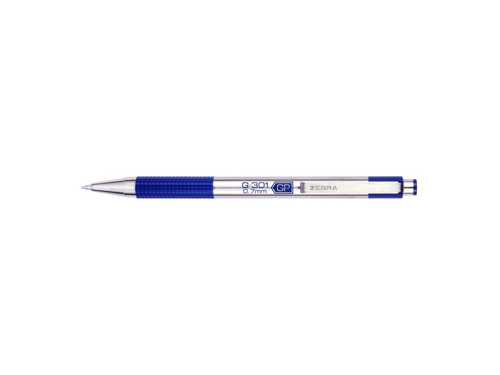 Populárne guľôčkové pero ZEBRA "F-301" s gélovým atramentom - telo z nehrdzavejúcej ocele - rebrovaný úchop - priemer guľôčky: 0,7 mm - hrúbka písma: 0,38 mm - farba písma: modrá - typ tuhy: JKDodatočné parametre