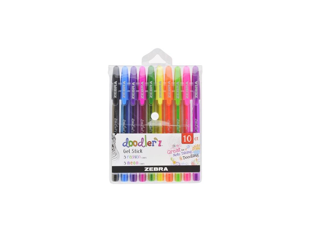 Gélové pero, sada, 0,33 mm, s uzáverom, ZEBRA "Doodler`z Neon & Fashion", mix 10 farieb