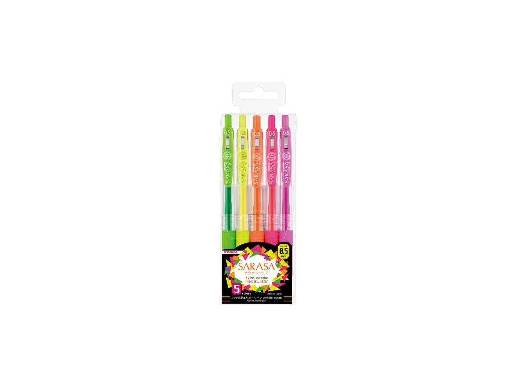 Gélové pero, sada, 0,33 mm, stláčací mechanizmus, ZEBRA "Sarasa Clip Neon", 5 neónových farieb