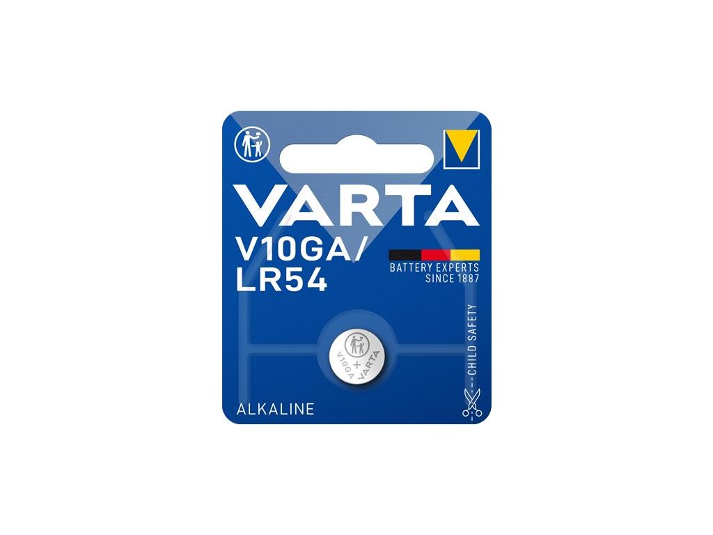 Typ - V 10 GA (LR1130/LR54/189) Napätie (V) - 1,5 Systém - Primárny alkalický Mangán (Zn/MnO2) Kapacita (mAh) - 50 Výška (mm) - 3,1 Priemer (mm) - 11,6 Hmotnosť (g) - 1.1Dodatočné parametre