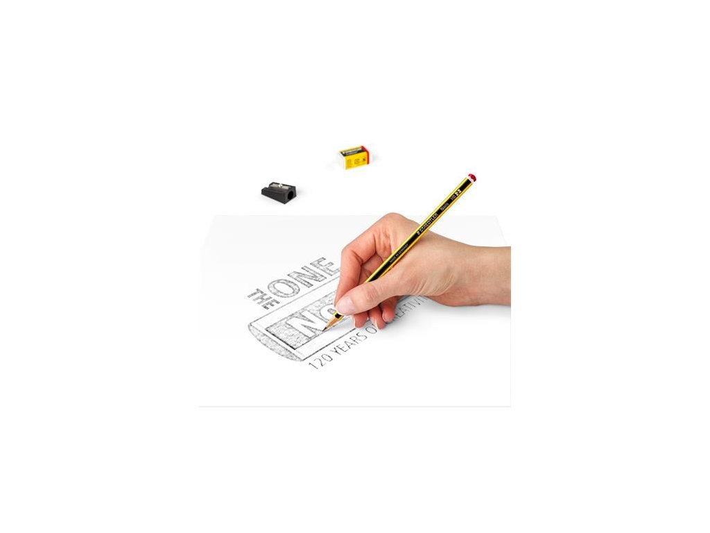 Kvalitná grafitová ceruzka, vhodná do kancelárie aj do školy. - ideálne na písanie, kreslenie, skicovanie - vysoká odolnosť voči lámavosti vďaka špeciálnej výrobe tuhy - ľahko gumovateľná - šesťhranné telo ceruzky - certifikácia PEFC - hrúbka písma: 2 mm - výročná sada Noris obsahuje 3 grafitové ceruzky s tvrdosťou HB, 1 x čierne, jednodierové strúhadlo a gumu Značka: STAEDTLER Výrobca: STAEDTLER SE Adresa: Moosäckerstr. 3 , 90427 Nuremberg, Germany Web: http://www.staedtler.com Email: https://www.staedtler.com/intl/en/service/contact/Dodatočné parametre