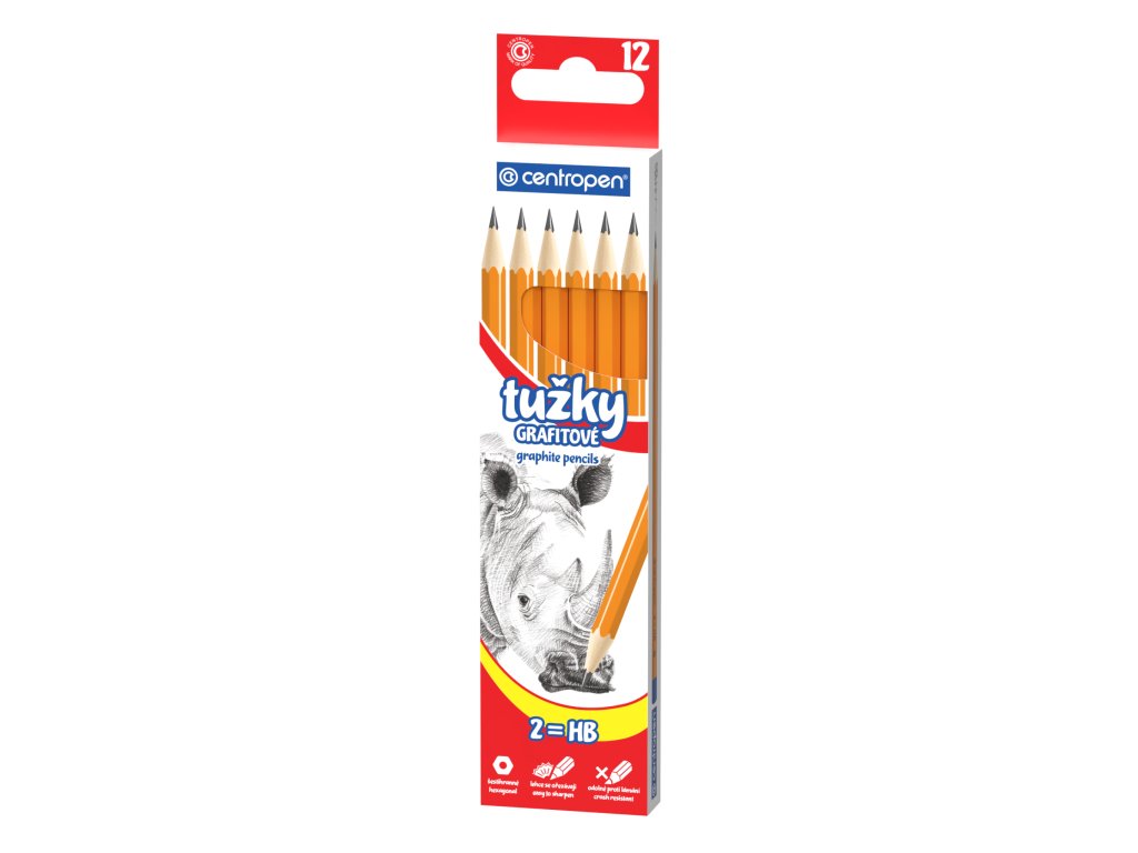 - grafitová ceruzka drevená, tvrdosť 1=B, 2=HB, 3=H alebo 2=HB s gumotypom