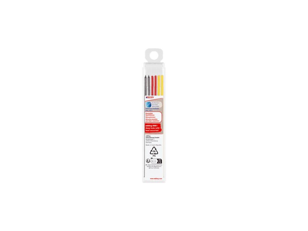 - obsah sady: 2 grafitové, 2 červené a 2 žlté hroty Značka: EDDING Výrobca: EDDING INTERNATIONAL GMBH Adresa: Bookkoppel 7, 22926 Ahrensburg, Germany Web: www.edding.com Email: info@edding.com