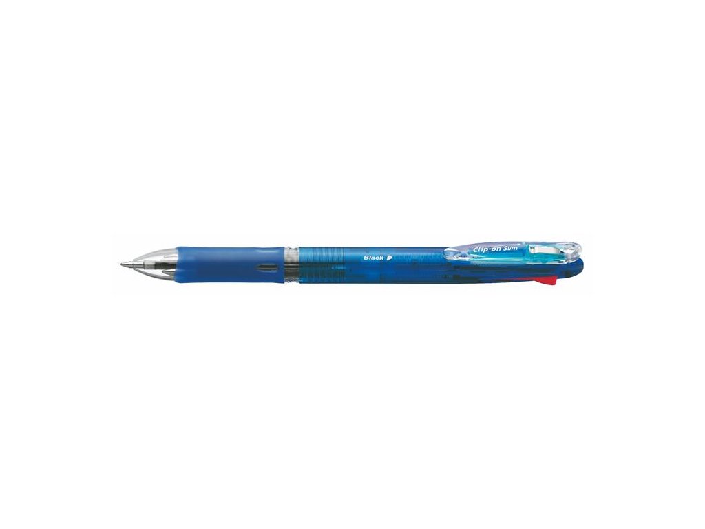 Guľôčkové pero, 0,24 mm, stláčací mechanizmus, 4 farby, ZEBRA "Clip-on Slim 4C", modrá
