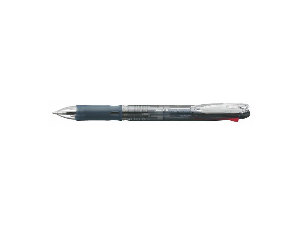 Guľôčkové pero, 0,24 mm, stláčací mechanizmus, 4 farby, ZEBRA "Clip-on Slim 4C", priehľadná