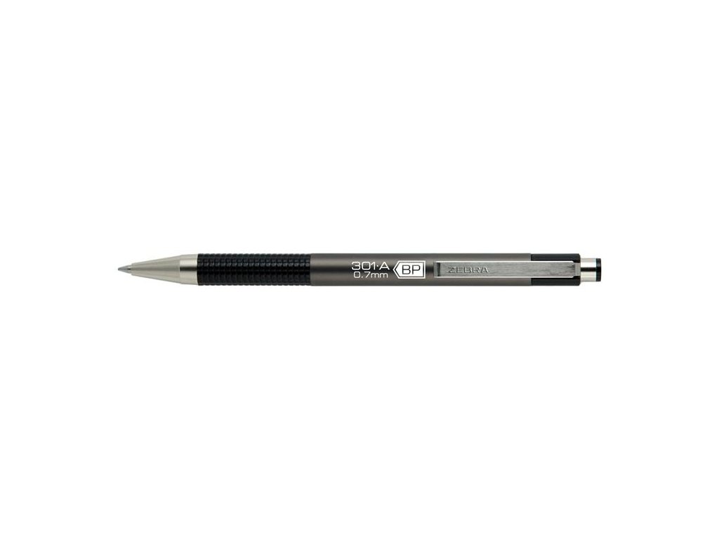 Guľôčkové pero, 0,24 mm, stláčací mechanizmus, farba tela: antracitová, ZEBRA "F301 A", modré