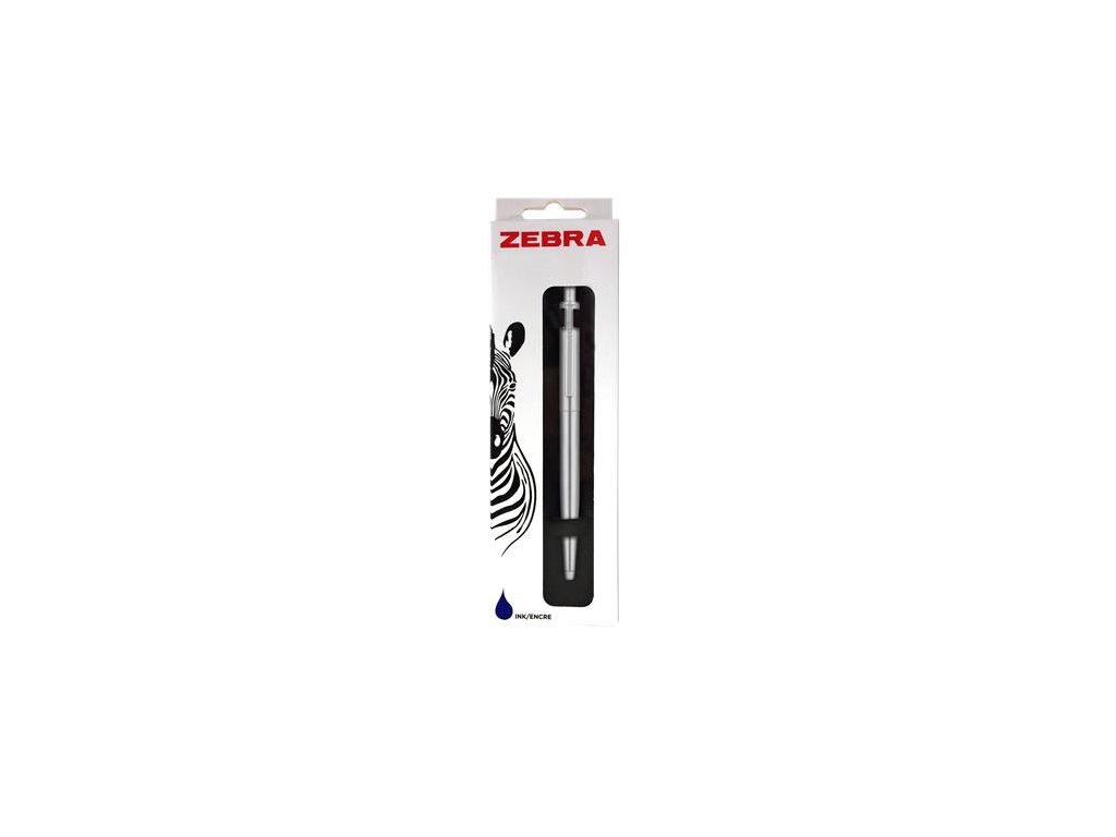 Guľôčkové pero, 0,24 mm, stláčací mechanizmus, klip striebornej farby, strieborné telo pera, ZEBRA "901", modrá