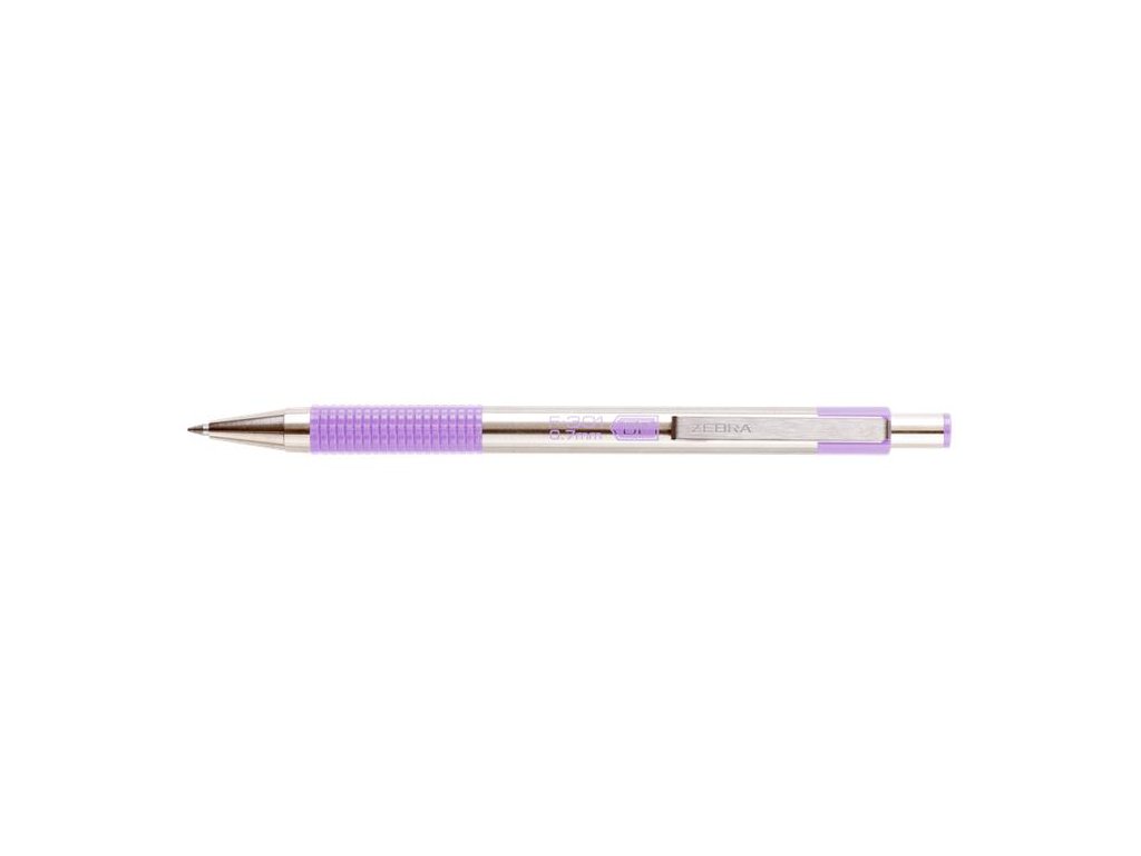 Guľôčkové pero, 0,24 mm, stláčací mechanizmus, nerezová oceľ, farba tela: pastelová fialová, ZEBRA "F-301", modré