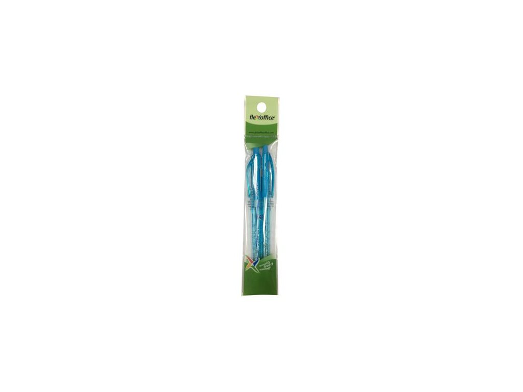 Guľôčkové pero, 0,25 mm, stláčací mechanizmus, 2 ks/blister, FLEXOFFICE "Jonat", modré