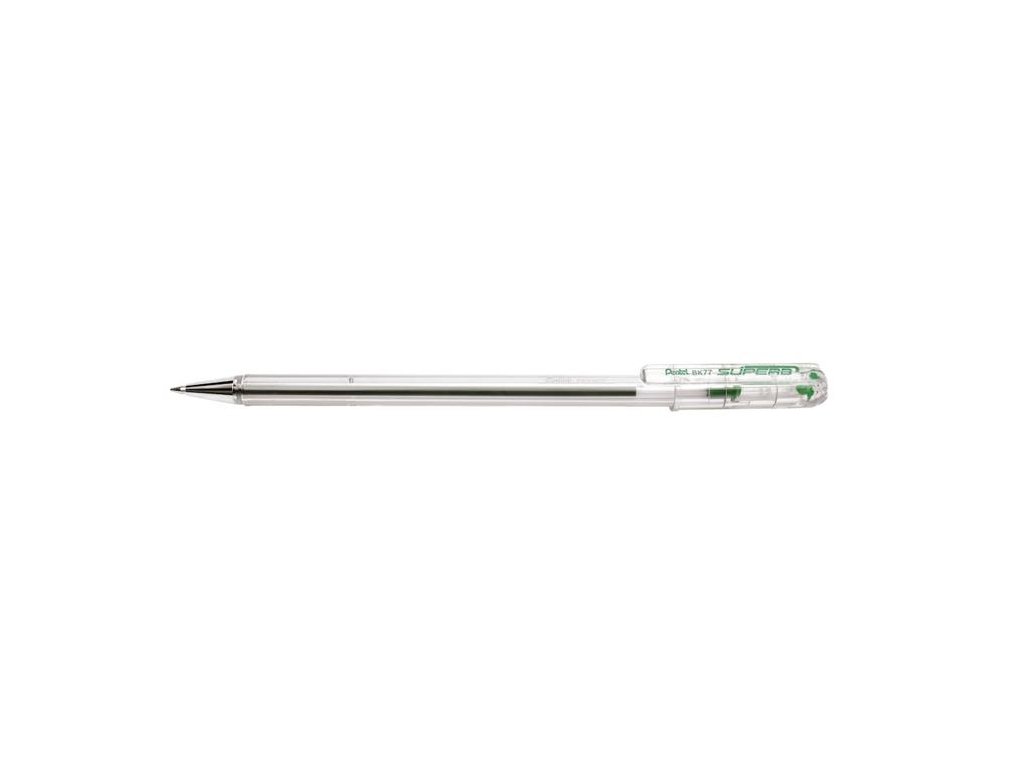 Guľôčkové pero, 0,35 mm, s vrchnákom, PENTEL "Superb BK77", zelená