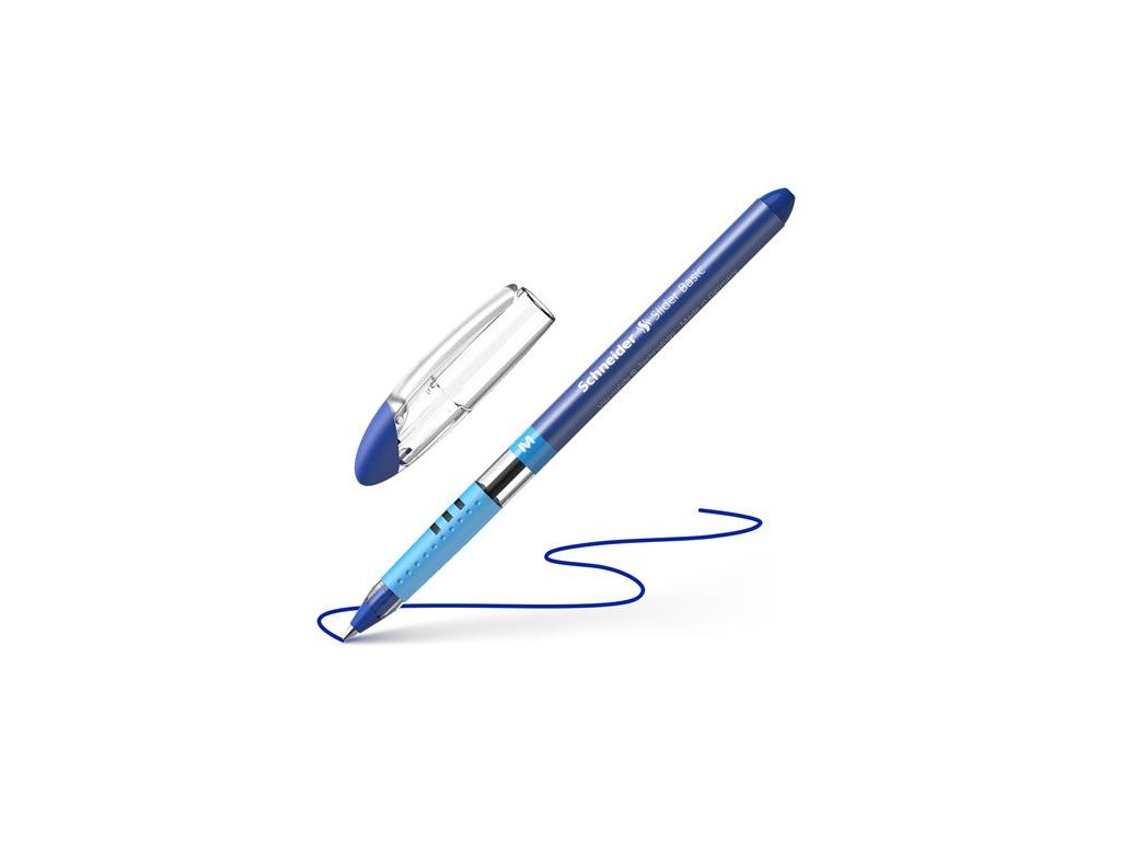Guľôčkové pero, 0,5 mm, s vrchnákom, SCHNEIDER "Slider M", modré