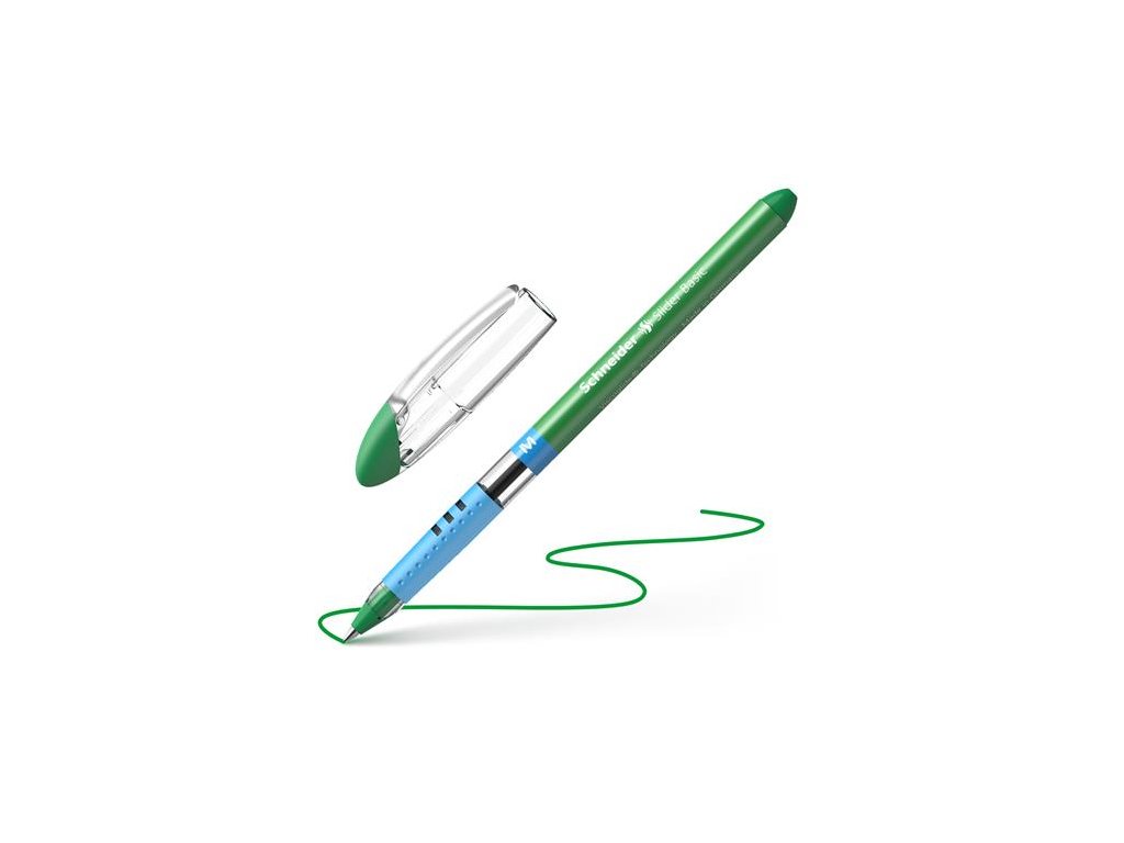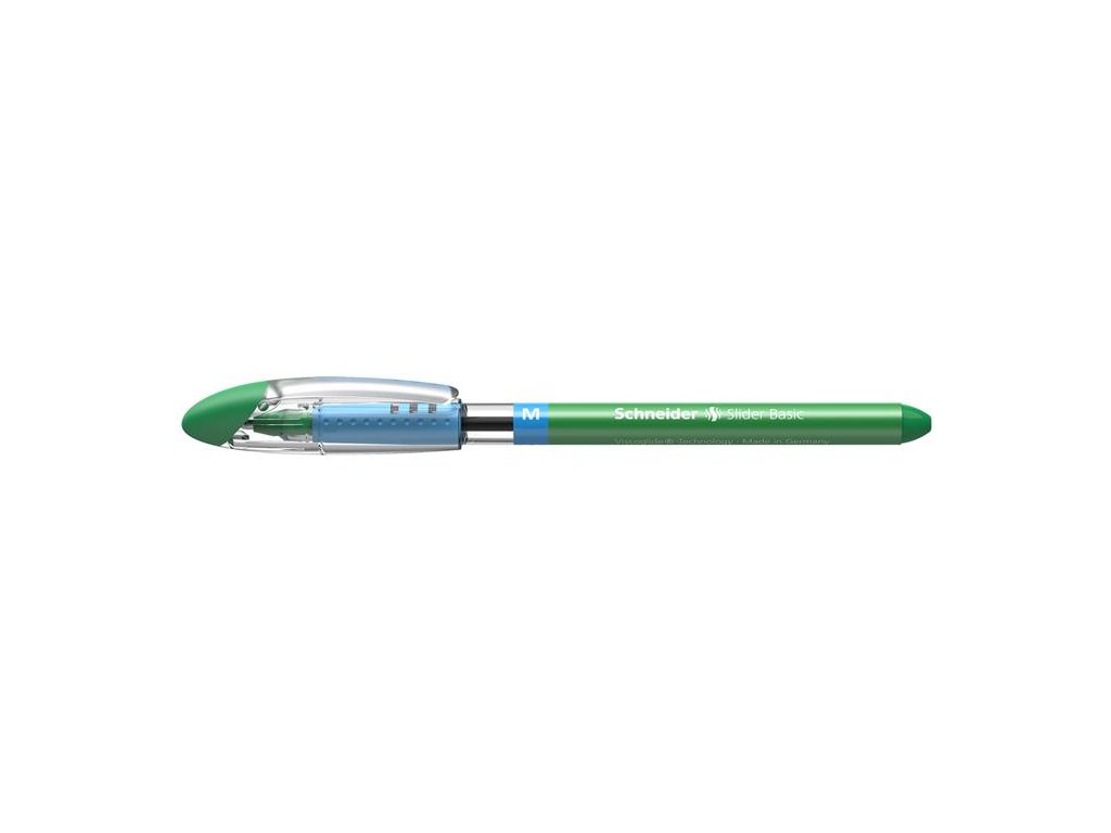 Guľôčkové pero, 0,5 mm, s vrchnákom, SCHNEIDER "Slider M", zelené