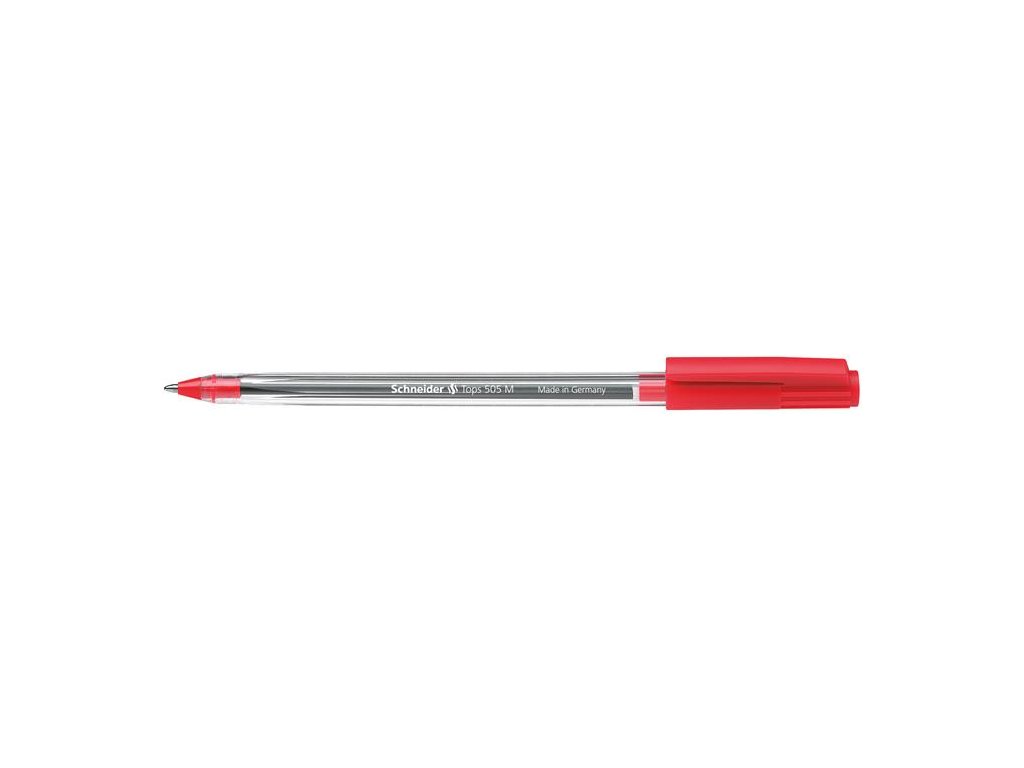 Guľôčkové pero, 0,5 mm, s vrchnákom, SCHNEIDER "Tops 505 M", červené