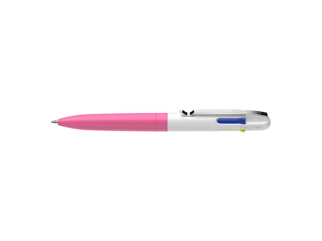 Guľôčkové pero, 0,5 mm, stláčací mechanizmus, 4 farby, SCHNEIDER "Take 4 Neon", ružové-biele
