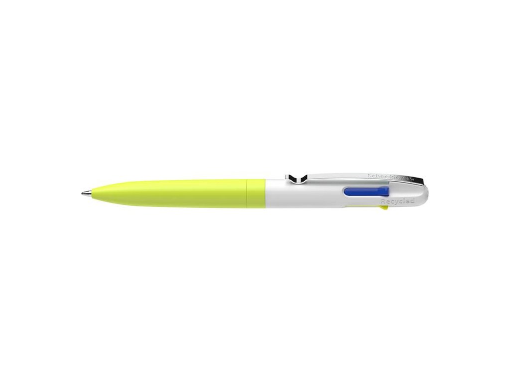 Guľôčkové pero, 0,5 mm, stláčací mechanizmus, 4 farby, SCHNEIDER "Take 4 Neon", žlté-biele