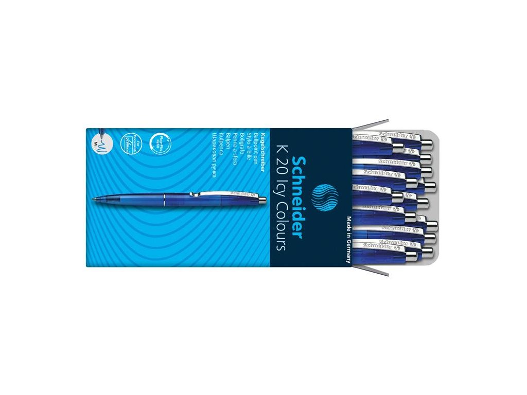 Guľôčkové pero, 0,5 mm, stláčací mechanizmus, SCHNEIDER "K20 Icy", modrá