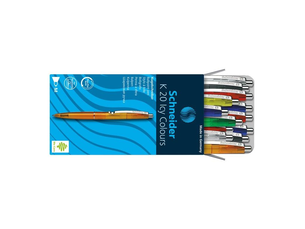 Guľôčkové pero, 0,5 mm, stláčací mechanizmus, telo pera v rôznych farbách, SCHNEIDER "K20 Icy", modrá