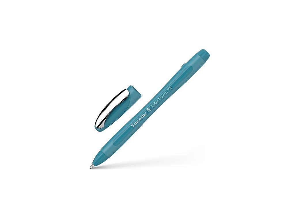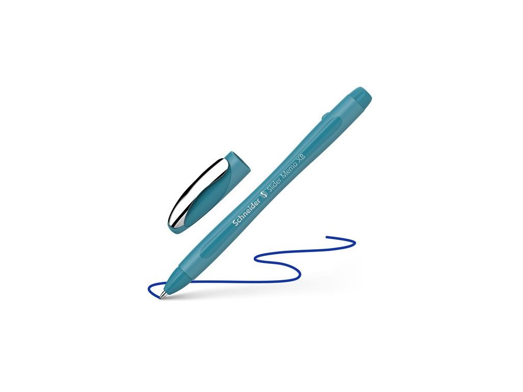 Guľôčkové pero, 0,7 mm, s vrchnákom, SCHNEIDER "Slider Memo XB", pávia modrá