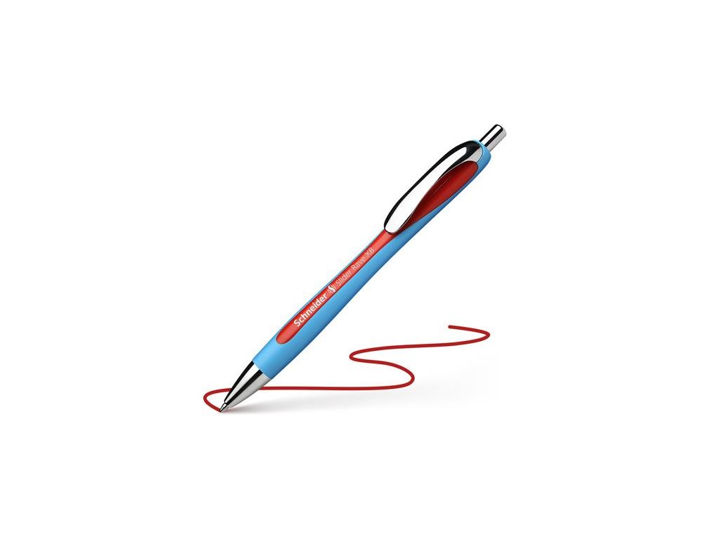 Guľôčkové pero, 0,7 mm, stláčací mechanizmus, SCHNEIDER "Slider Rave", červené