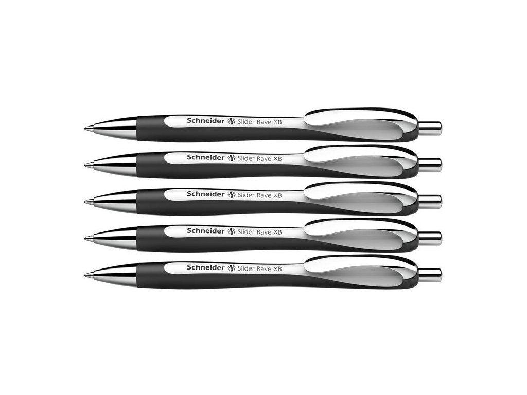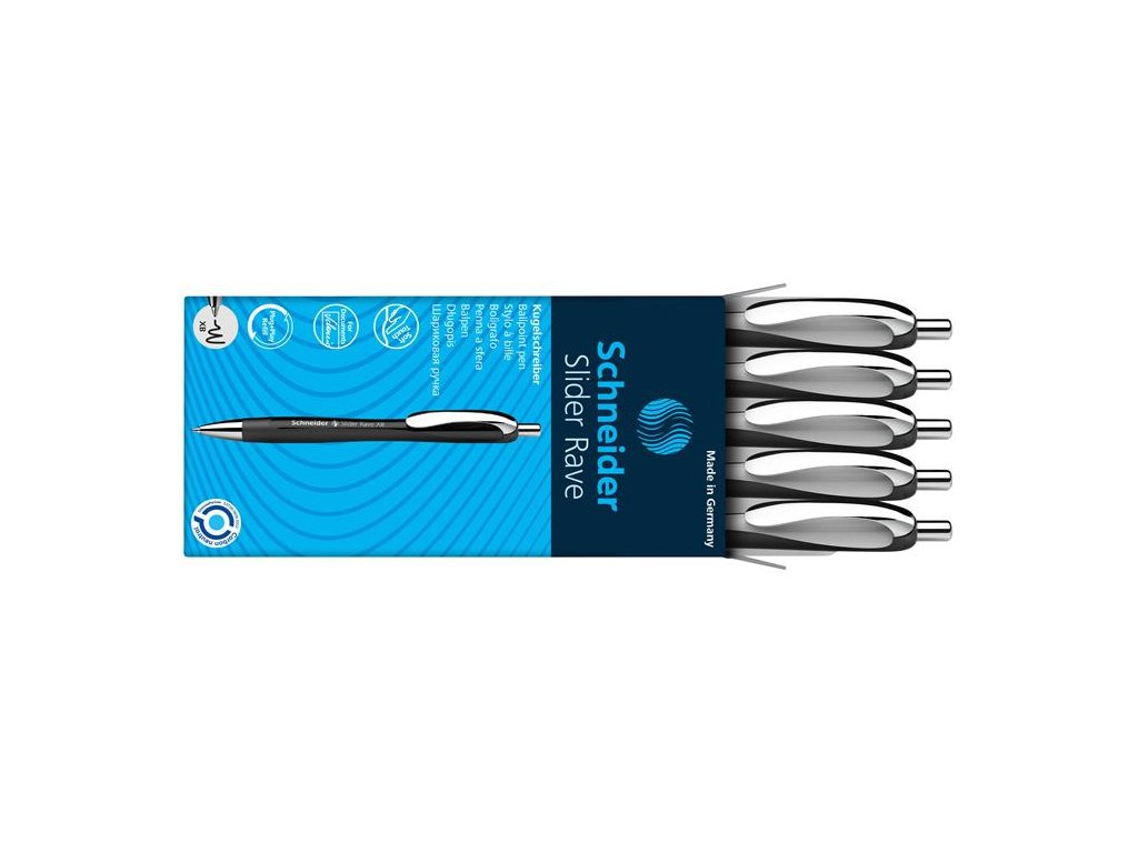 Guľôčkové pero, 0,7 mm, stláčací mechanizmus, SCHNEIDER "Slider Rave XB", čierno-biele, modré