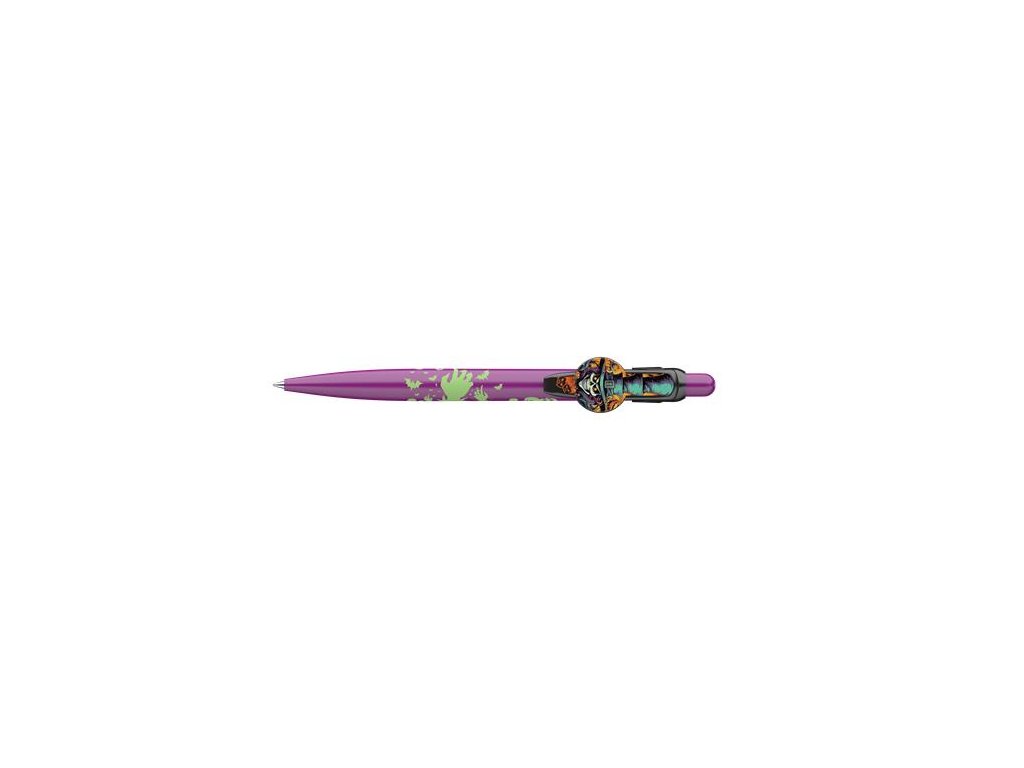 Guľôčkové pero, 0,8 mm, stláčací mechanizmus, fialové vzorované telo, ICO "Halloween", modré