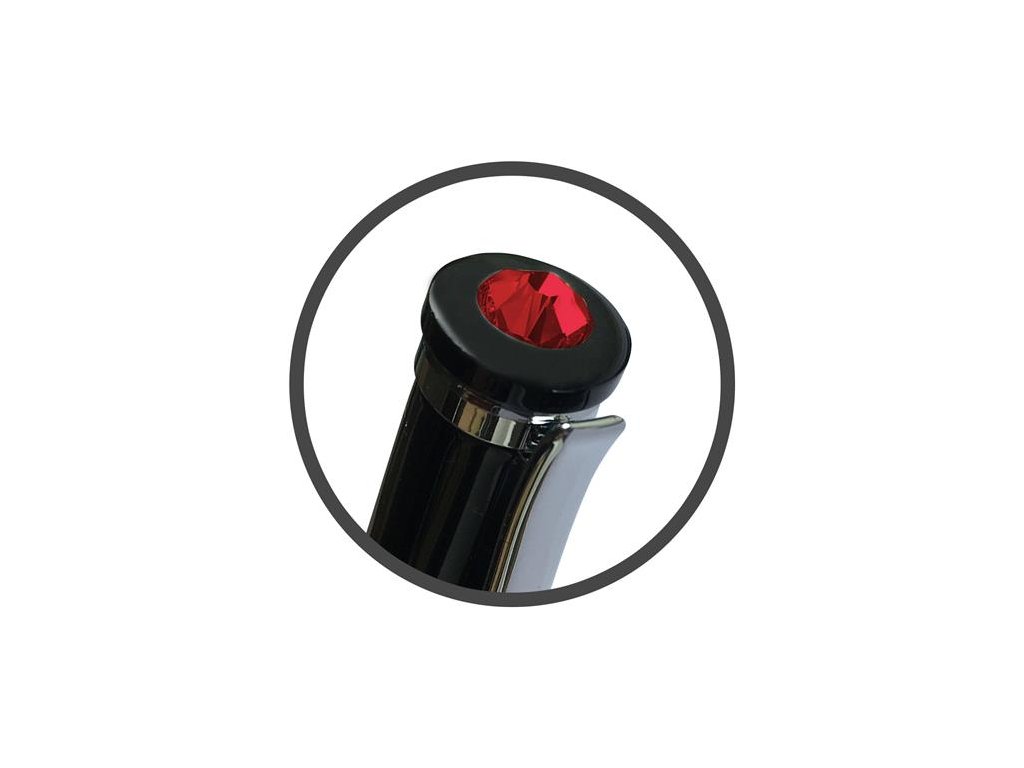 - guľôčkové pero s moderným dizajnom, ozdobené s originálnym krištáľom SWAROVSKI® - elegantné, trendové vyhotovenie - kovové telo pera je gravírovateľná - farba tela: čierna - farba krištáľu: light siam červená - farba náplne: modrá - hrúbka písma: 0,7mm - elegantné darčekové balenieDodatočné parametre