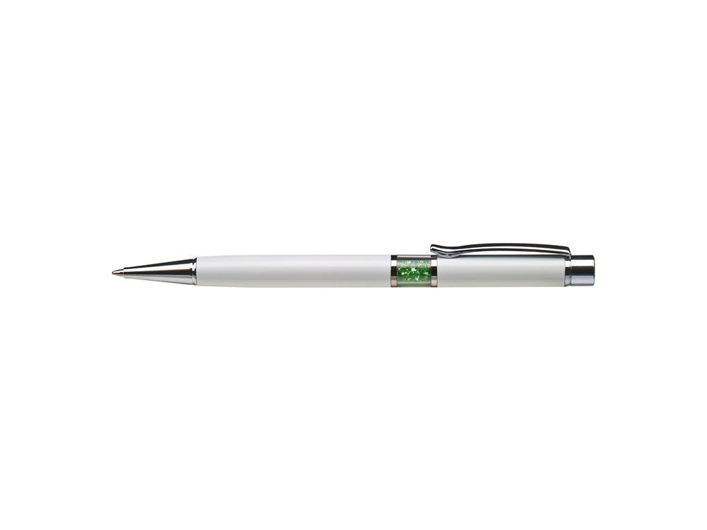 Guľôčkové pero, Crystals from SWAROVSKI®, biele, s peridot zelenými krištáľmi v strede tela, 14cm