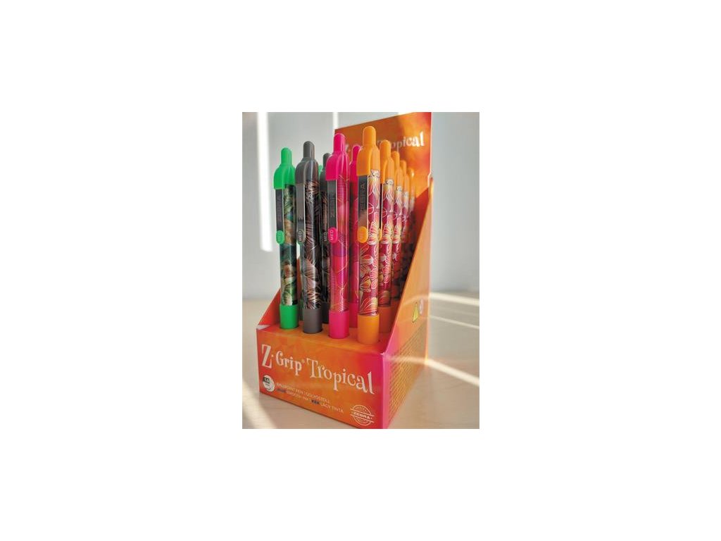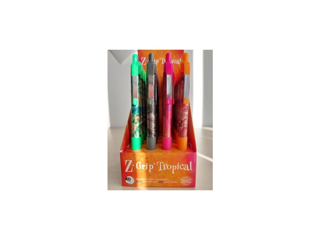 Guľôčkové pero, displej, 0,27 mm, stláčací mechanizmus, ZEBRA "Z-Grip Tropical", kék, 4 rôzne vzory