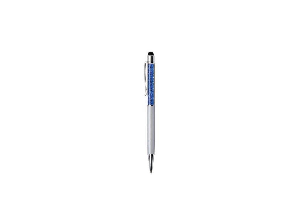 Guľôčkové pero, dotykové, so zafírovo modrými kryštálmi v hornej časti, dotykové, 14 cm, ART CRYSTELLA®