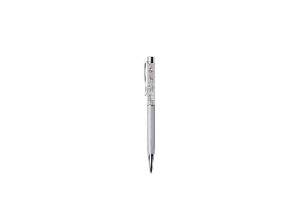 Guľôčkové pero, s bielym krištáľom v hornej časti, "Crystals from SWAROVSKI®" krémovo biela, ART CRYSTELLA