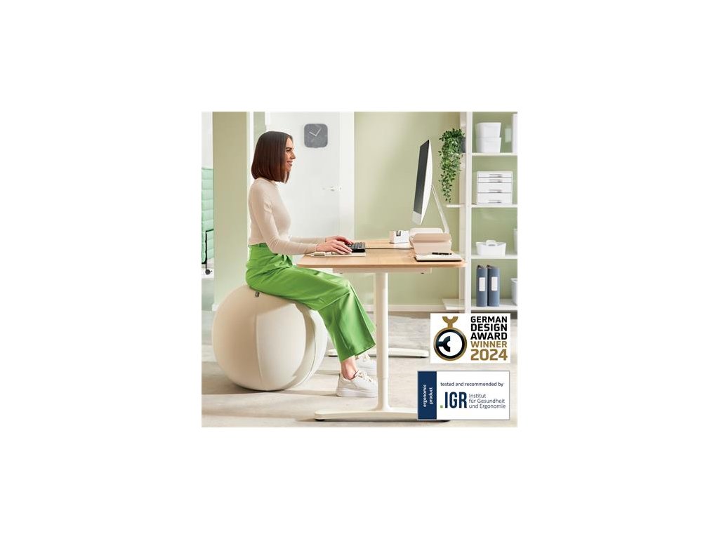 - Vystriedajte loptu a stoličku každých 30 minút, aby ste si zlepšili držanie tela a flexibilitu a pomohli zmierniť bolesti chrbta. Skontrolujte, že je lopta správne nafúknutá podľa pokynov. Testované a odporúčané nemeckým inštitútom IGR pre zdravie a ergonómiu podľa normy DIN 26800 EN ISO 15537