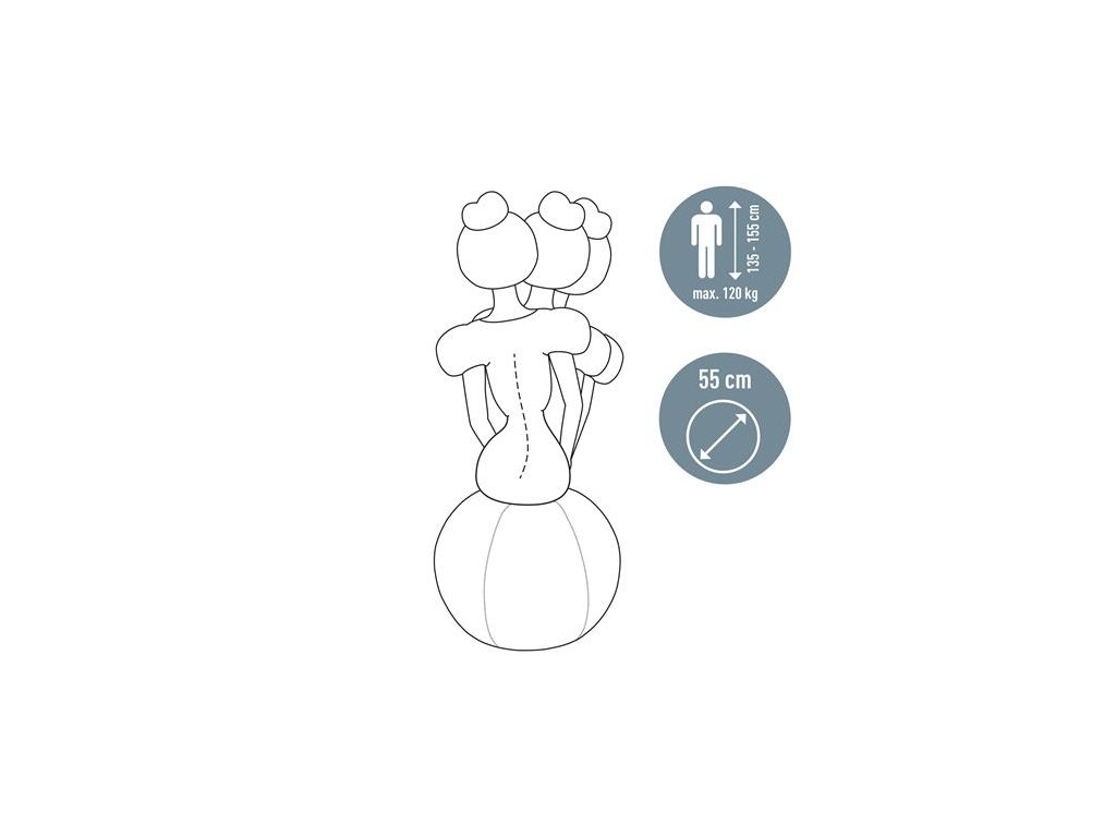 - Veľkorysý priemer 55 cm s robustným vnútorným balónom bez obsahu ftalátov vhodný pre osoby s výškou od 135 do 155 cm, maximálne zaťaženie 120 kg